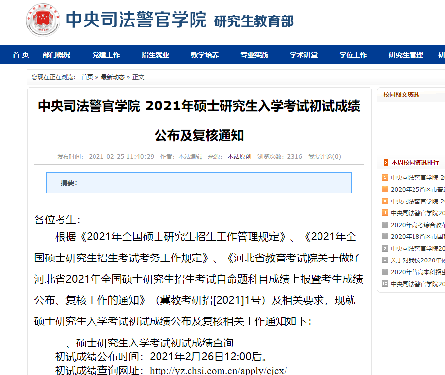 以上就是小编整理“2021拼搏在线官网初试成绩:中央司法警官学院拼搏在线官网初试成绩查询入口开启!初试成绩已公布!”的全部内容,想了解更多相关信息请持续关注本网站。