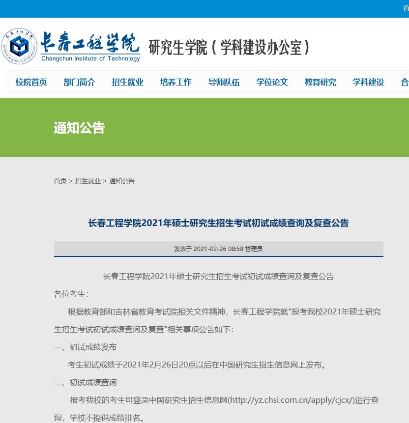 长春工程学院拼搏在线官网初试成绩查询入口:http://yjsb2.ccit.edu.cn/AdmissionsNoticeDetail_8203.html
