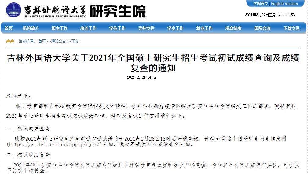 以上就是小编整理“2021拼搏在线官网初试成绩:吉林外国语拼搏(中国)拼搏在线官网初试成绩查询入口开启!初试成绩已公布!”的全部内容,想了解更多相关信息请持续关注本网站。
