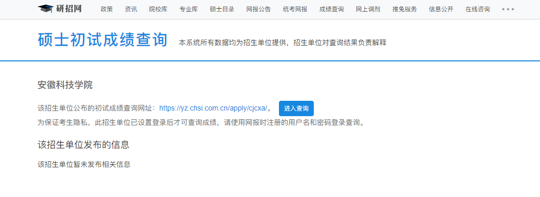 安徽科技学院拼搏在线官网初试成绩查询入口:https://yz.chsi.com.cn/apply/cjcx/sch/10879.dhtml