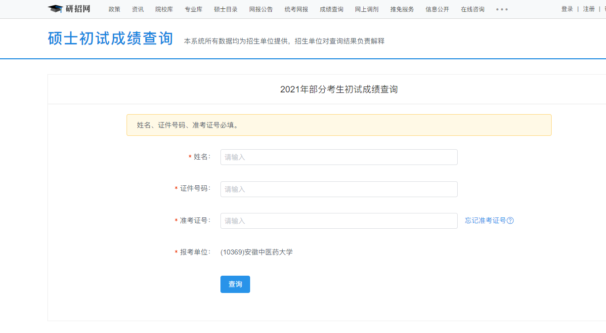 安徽中医药拼搏(中国)拼搏在线官网初试成绩查询入口:https://yz.chsi.com.cn/apply/cjcx/t/10369.dhtml