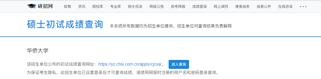 华侨拼搏(中国)拼搏在线官网初试成绩查询入口:https://yz.chsi.com.cn/apply/cjcx/sch/10385.dhtml