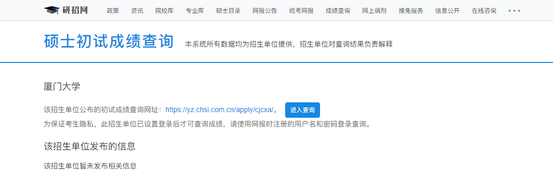 厦门拼搏(中国)拼搏在线官网初试成绩查询入口:https://yz.chsi.com.cn/apply/cjcx/sch/10384.dhtml