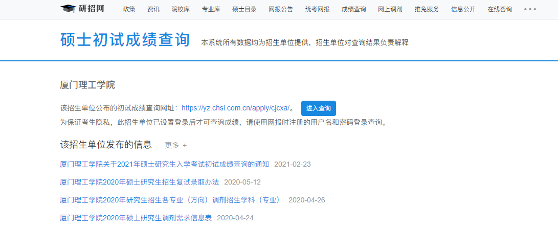 以上就是小编整理“2021拼搏在线官网初试成绩:厦门理工学院拼搏在线官网初试成绩查询入口开启!初试成绩已公布!”的全部内容,想了解更多相关信息请持续关注本网站。