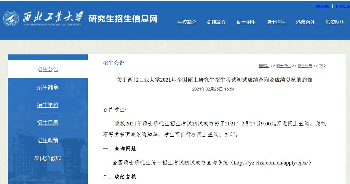 以上就是小编整理“2021拼搏在线官网初试成绩:西北工业拼搏(中国)拼搏在线官网初试成绩查询入口开启!初试成绩已公布!”的全部内容,想了解更多相关信息请持续关注本网站。