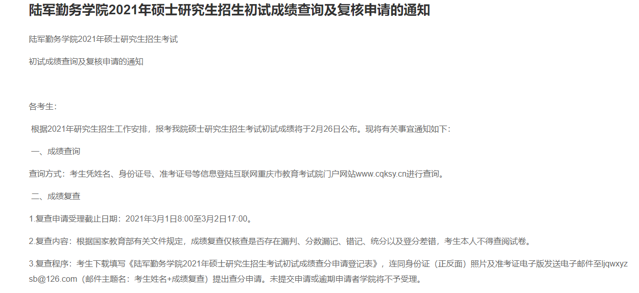 以上就是小编整理“2021拼搏在线官网初试成绩:陆军勤务学院拼搏在线官网初试成绩查询入口开启!初试成绩已公布!”的全部内容,想了解更多相关信息请持续关注本网站。
