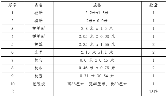 为确保学生身体健康和公共卫生安全,新生可自行携带卧具须确保质量。同时,学校为学生招标代购规格标准统一的卧具,合计价格以公示的中标价为准。具体包括: