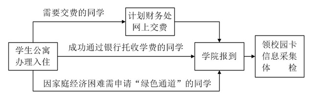 各位同学根据各自的情况,按照下图所示到计划财务处、学院(部)报到地点等处办理入学事宜,入学时间安排详见附件一。