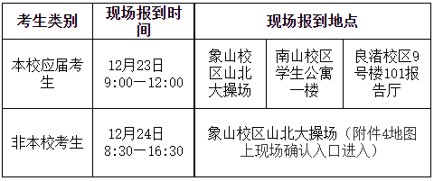 考虑疫情防控需要,减少考前人员聚集,将本校应届考生与非本校考生现场报到时间及地点公布如下: