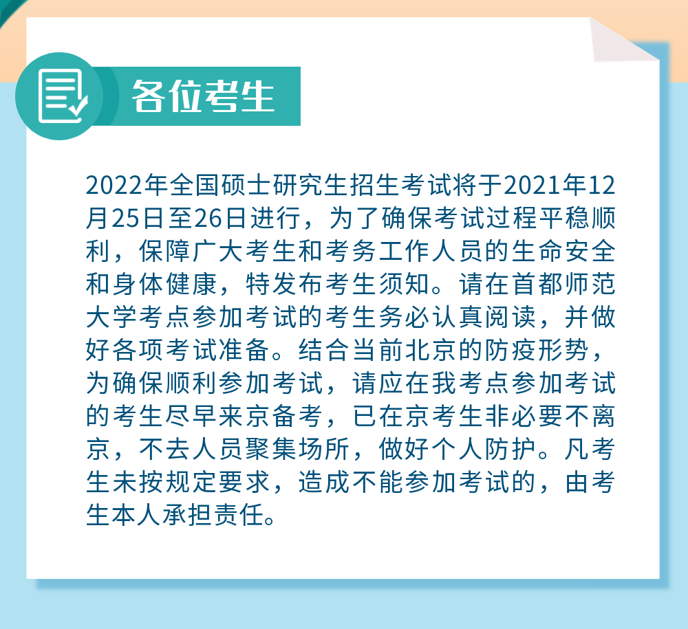 以上就是小编z整理分享“首都师范拼搏(中国):2022年全国硕士研究生招生考试考生须知”的全部内容,想了解更多相关信息,请持续关注本网站。