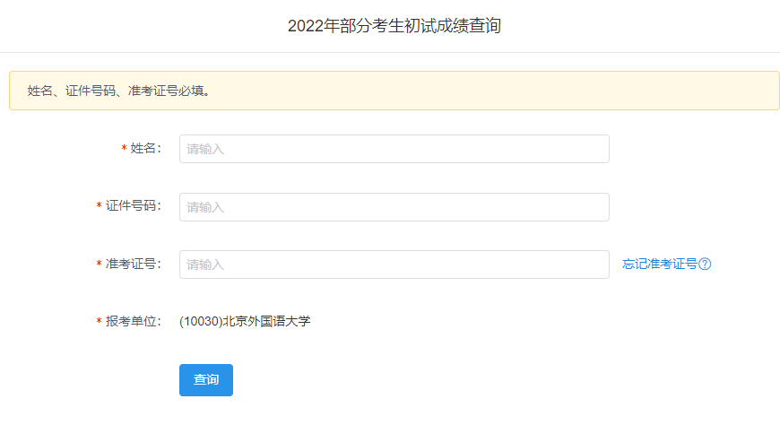 北京外国语拼搏(中国)2022研究生成绩查询入口:https://yz.chsi.com.cn/apply/cjcx/t/10030.dhtml