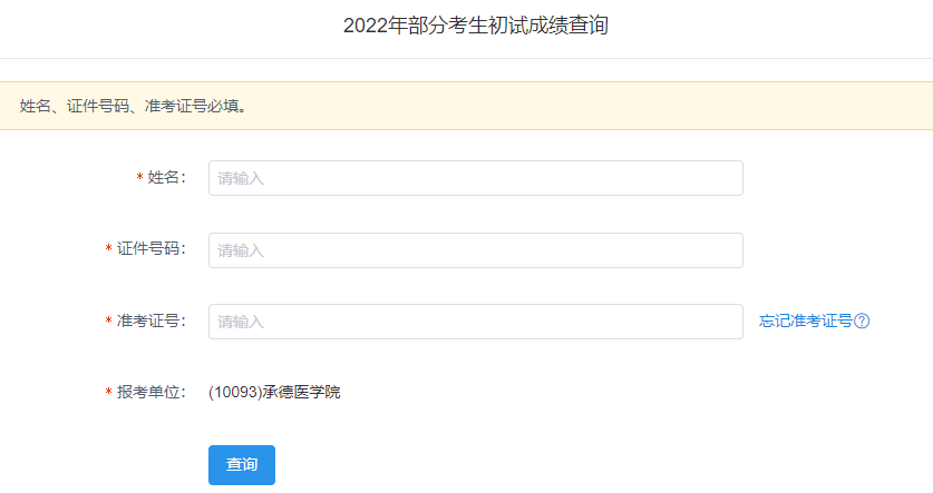 承德医学院2022研究生成绩查询入口:https://yz.chsi.com.cn/apply/cjcx/t/10093.dhtml