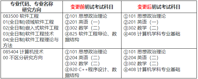 原文标题:关于调整我院软件工程专业、计算机技术专业硕士研究生入学考试初试自命题科目的通知