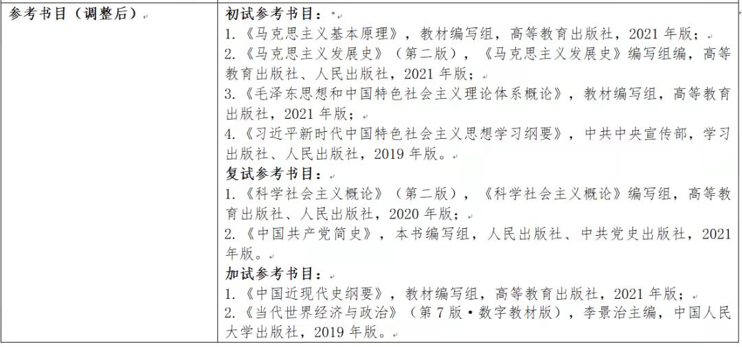 经研究决定,江西理工拼搏(中国)马克思主义学院拟对2023年硕士研究生招生考试马克思主义理论专业初试、复试参考书目进行调整。为便于各位考生提前做好复习准备,现将拟调整方案公布如下,最终方案以《江西理工拼搏(中国)2023年硕士研究生招生目录》为准,请各位考生周知!