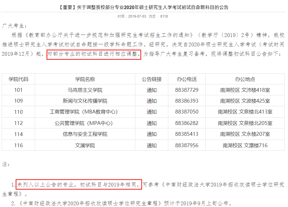 以上就是中南财经政法拼搏(中国)调整部分专业2020年硕士研究生入学考试初试自命题科目的公告,将专业目录了解透彻,如果有变化还来得及调整复习方向。希望这篇文章能够帮助到同学们,更多备考资讯请点击院校公告栏目!