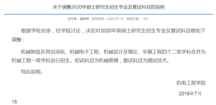 以上就是“中国矿业拼搏(中国)机电工程学院关于调整2020年硕士研究生招生专业及复试科目的说明”的全部内容!更多院校考试科目更改内容,点击进入“院校公告”栏目查看!