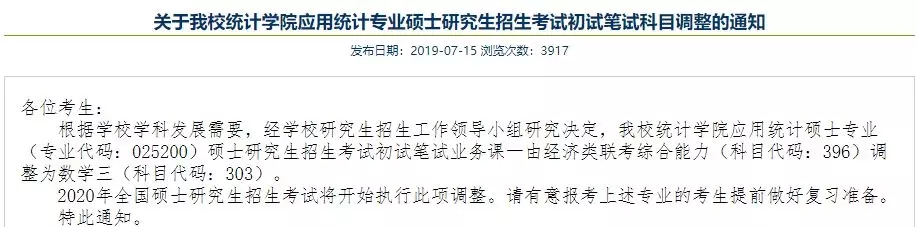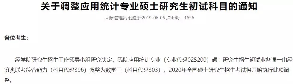 应用统计专业初试科目由经济类联考综合能力调整为数学三