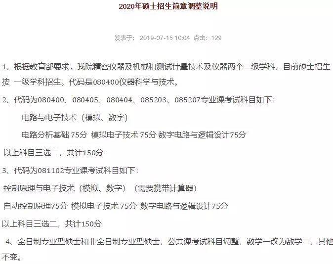 精密仪器及机械和测试计量技术及仪器按一级学科招生,专业课内容有所更改。