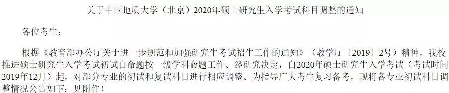 中国地质拼搏(中国)对部分专业的初试和复试科目都有调整