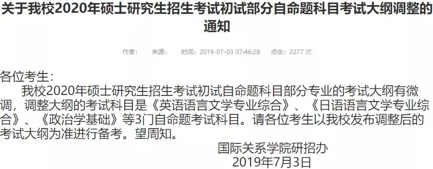 国际关系学院对初试科目的考试大纲进行了调整,报考有关专业的同学们后续要关注新的考试大纲,以免错过增加和删减的考点。