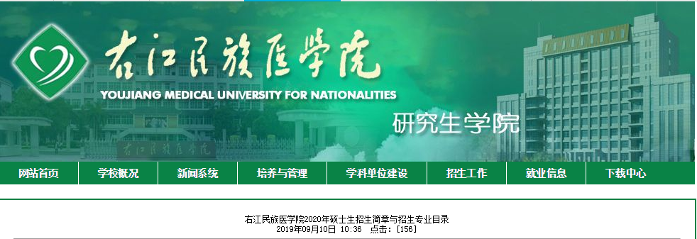 右江民族医学院2020年硕士生招生简章与招生专业目录汇总