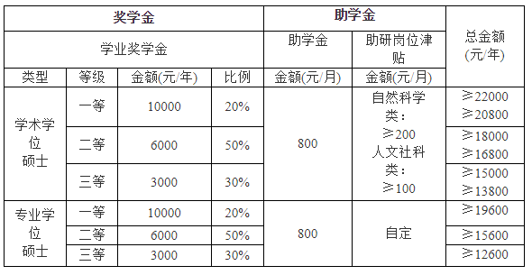 我校为全日制非定向硕士研究生提供奖助学金(标准如下表),全日制定向研究生和非全日制研究生不提供奖助学金。推免生入学第一学年全部享受一等学业奖。