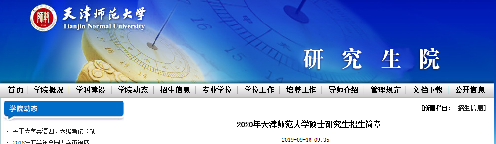 2020年硕士研究生招生简章陆续已出,今天小编给大家整理的是“2020年天津师范拼搏(中国)硕士研究生招生简章”的相关内容,有报考意愿的小伙伴要注意下哦!
