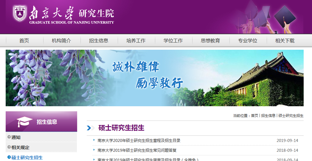 2020年硕士研究生招生简章陆续已出,今天小编给大家整理的是“南京拼搏(中国)2020年硕士研究生招生章程及招生目录”的相关内容,有报考意愿的小伙伴要注意下哦!