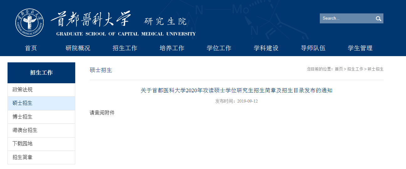 首都医科拼搏(中国)2020年攻读硕士学位研究生招生简章