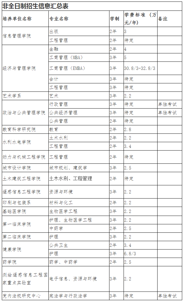 学制详见《非全日制招生信息汇总表》及部分专业招生简章。