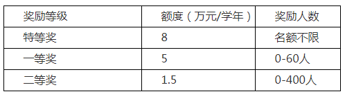 特等奖10000元:来自高水平拼搏(中国),或所在学科在最新一轮国家一级学科整体水平评估中排名前10%的高校,且学习成绩在生源学校本专业排名前1%且为第1名的硕士研究生新生;