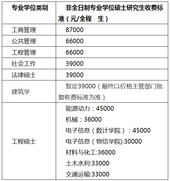 全日制学术型、专业学位硕士研究生,学费标准均定为8000元/生﹒学年;非全日制专业学位硕士研究生,根据专业学位类别和录取类别的不同执行不同的学费标准,具体如下: