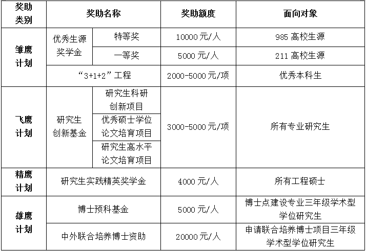 2.学校同时实施“四鹰计划”,符合相关条件者均可申请相应奖助: