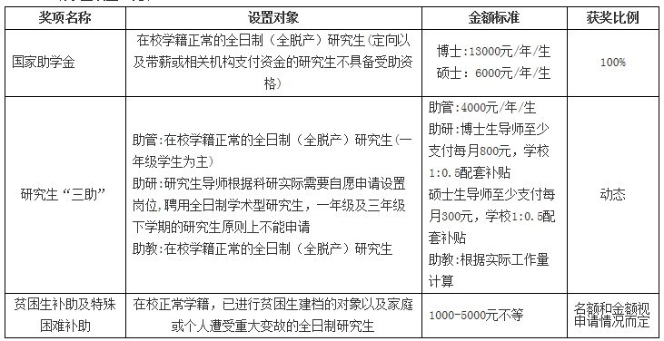 注:奖学金实际发放以学校有关奖助文件为准,非全日制研究生不享受各类研究生奖助政策。