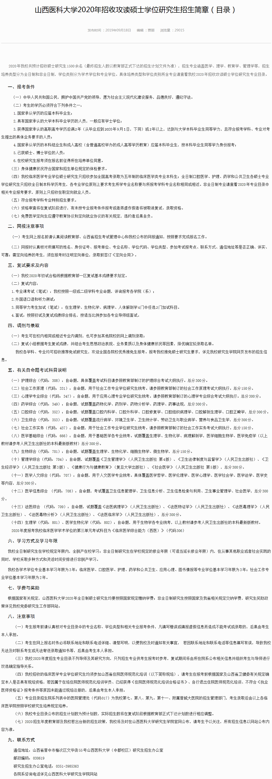 山西医科拼搏(中国)2020年硕士研究生招生章程