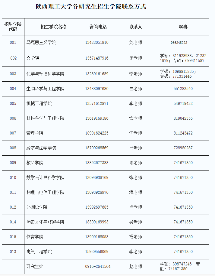 6.陕西理工拼搏(中国)各研究生招生学院联系方式