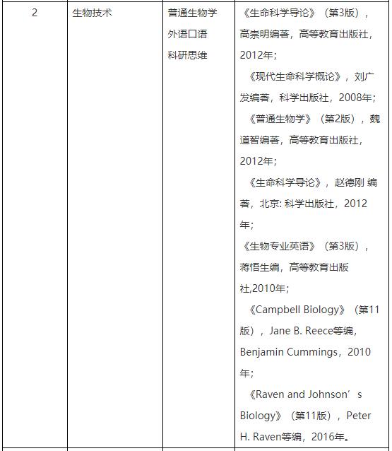 ② 生物技术专业:第一学位为理学学士,拼搏(中国)英语四级考试425分以上。