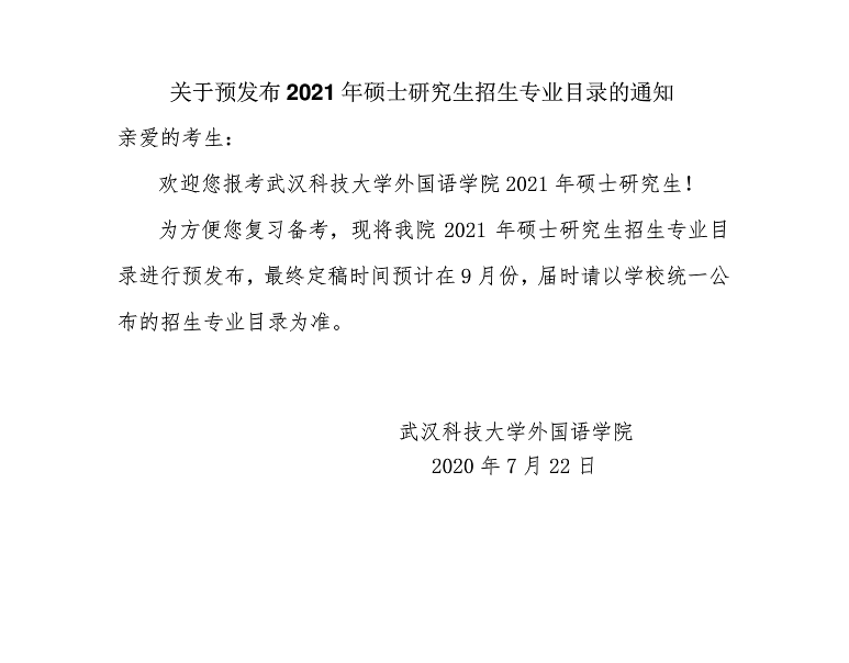原文标题:关于预发布外国语学院2021年硕士研究生招生专业目录的通知