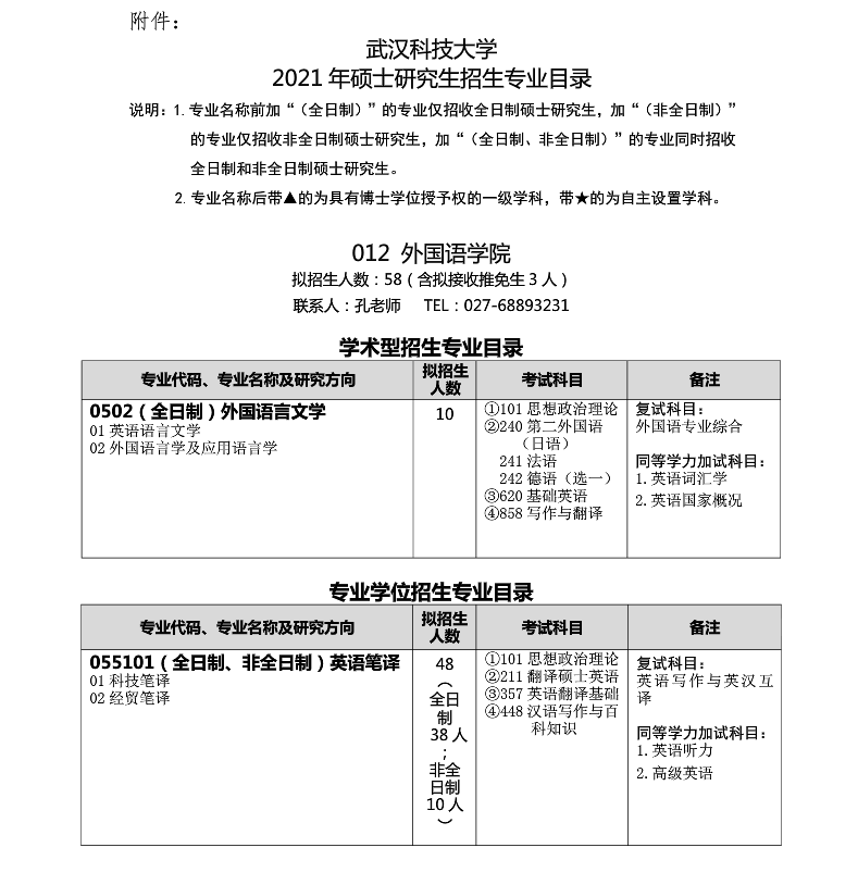 以上就是“2021拼搏在线官网招生简章:武汉科技拼搏(中国)外国语学院2021年硕士研究生招生简章”的全部内容!更多信息尽在招生简章栏目,祝拼搏在线官网成功!