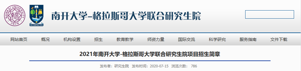 2021年南开拼搏(中国)-格拉斯哥拼搏(中国)联合研究生院项目招生简章