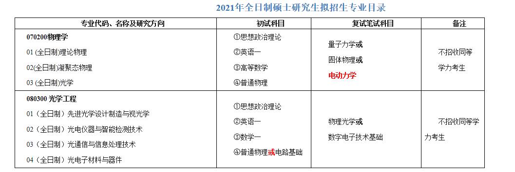 物理科学与技术学院现有学术学位一级学科硕士点2 个:光学工程、物理学。