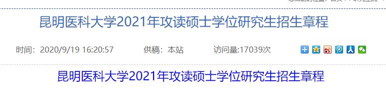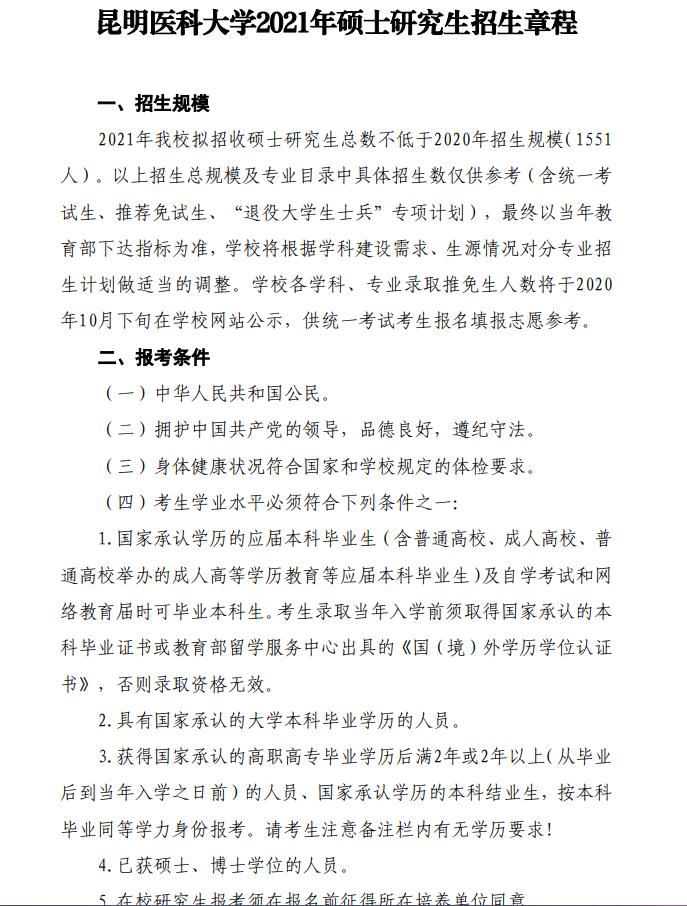 2021拼搏在线官网招生简章:昆明医科拼搏(中国)2021年攻读硕士学位研究生招生章程