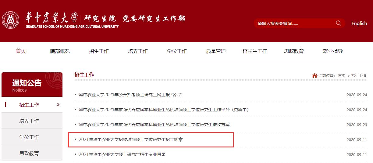 点击查看:华中农业拼搏(中国)2021年硕士研究生招生简章
