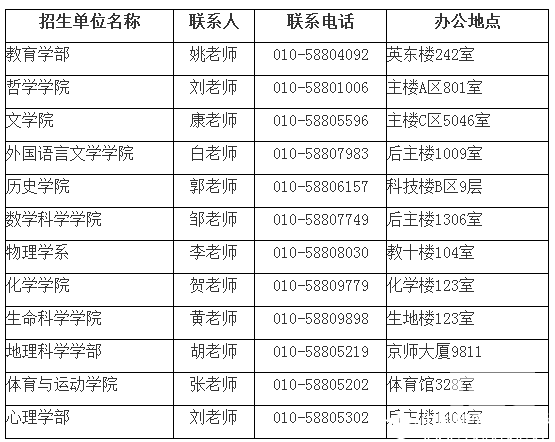 4.联系方式  北京师范拼搏(中国)研究生院招生办公室咨询电话:(010)58808156,传真:(010)58800519;办公地点:前主楼A区(西侧)二层212室;E-mail:yanzh@bnu.edu.cn