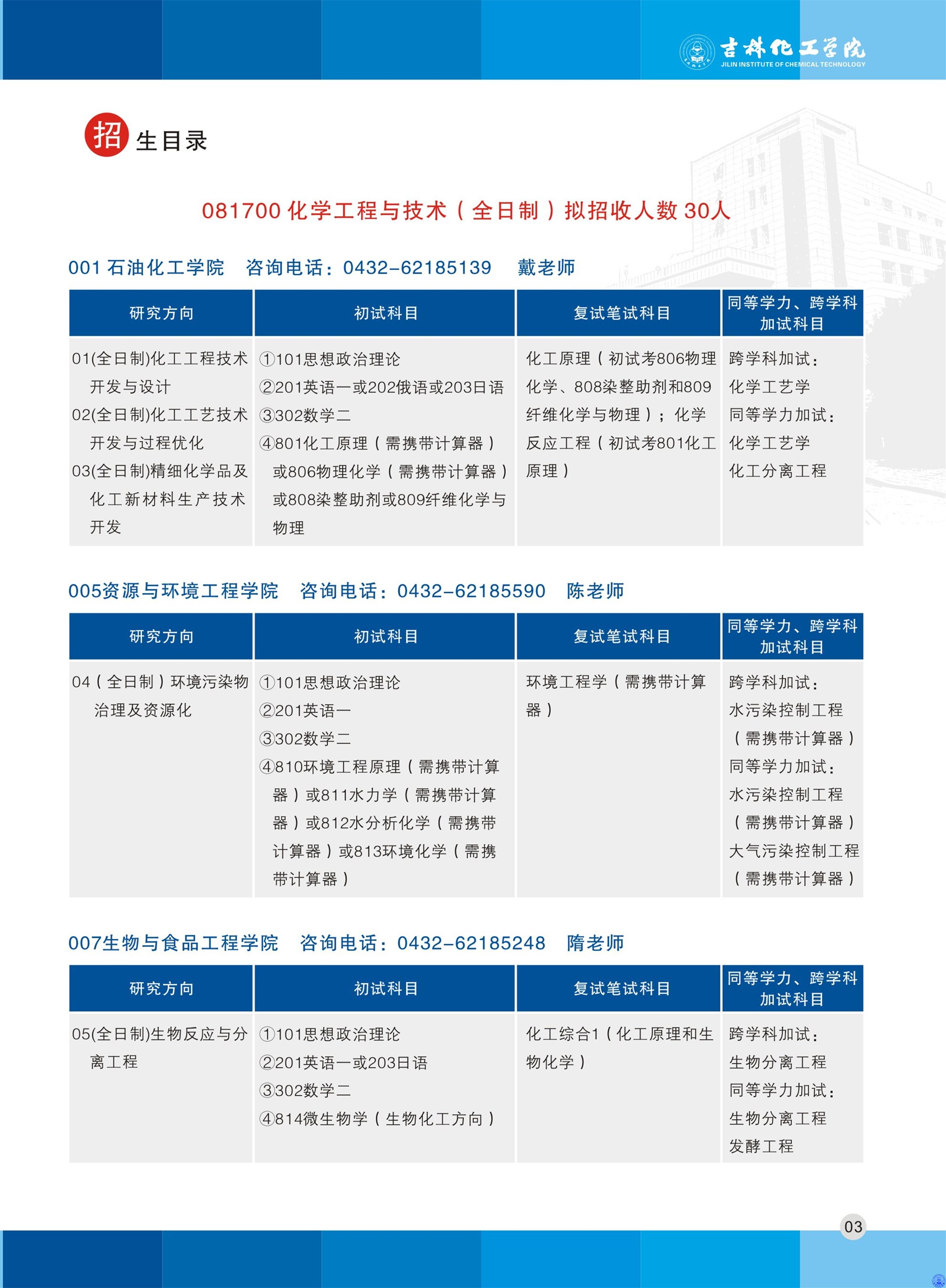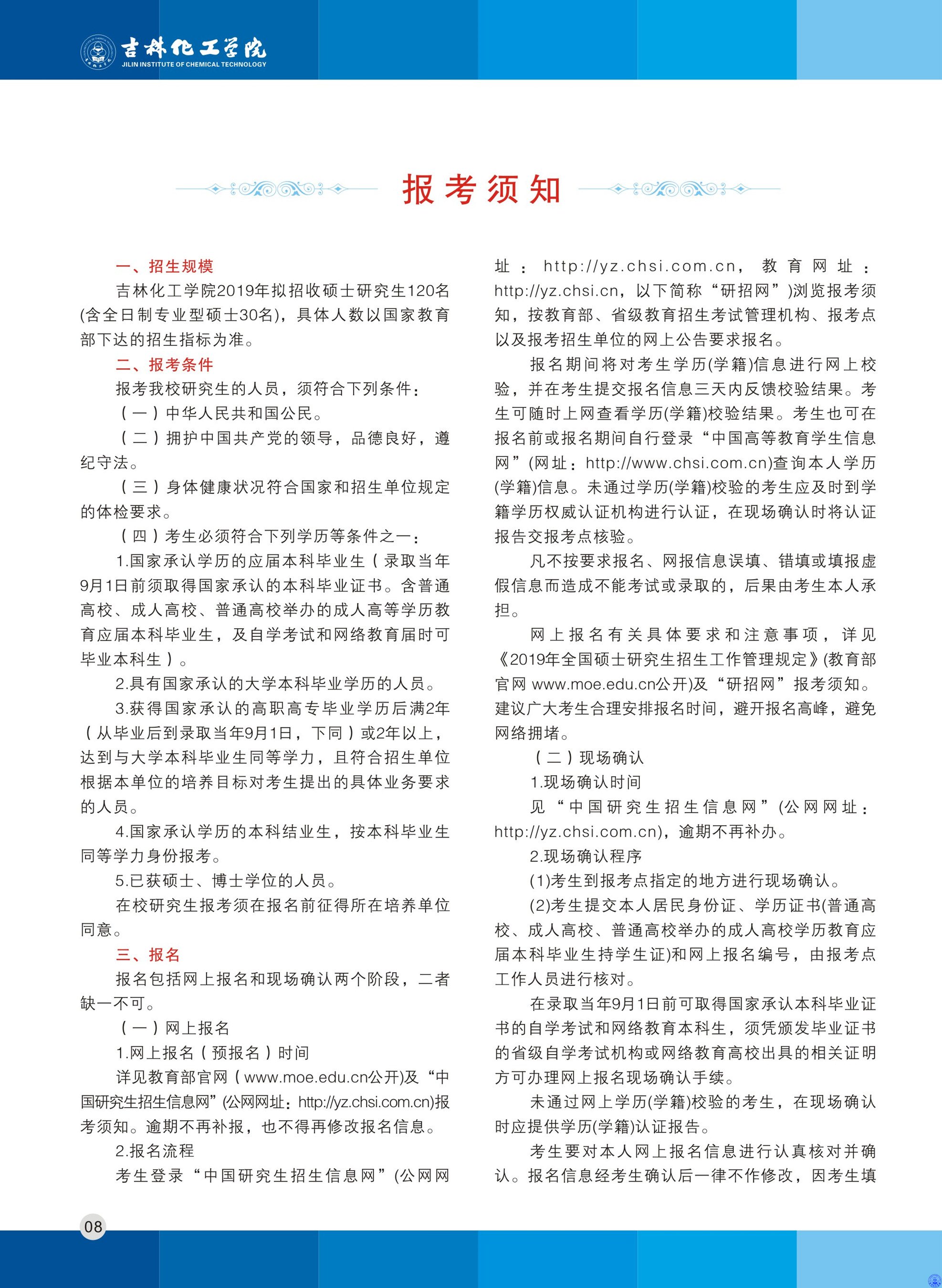 吉林化工学院2019年全日制硕士研究生招生简章