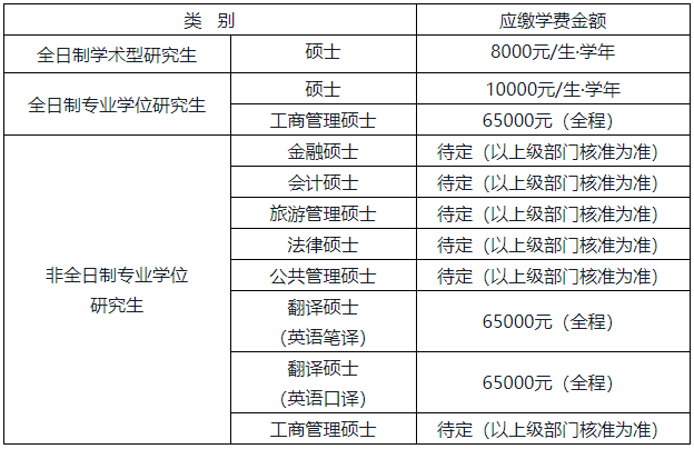 注:以上待定的学费将于2021年10月15日左右在学校研究生招生信息网对外公布。)