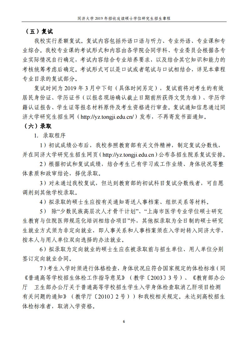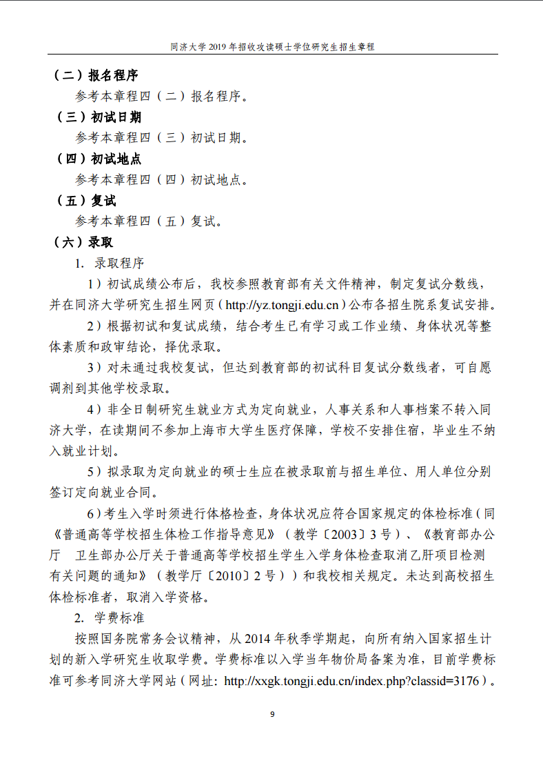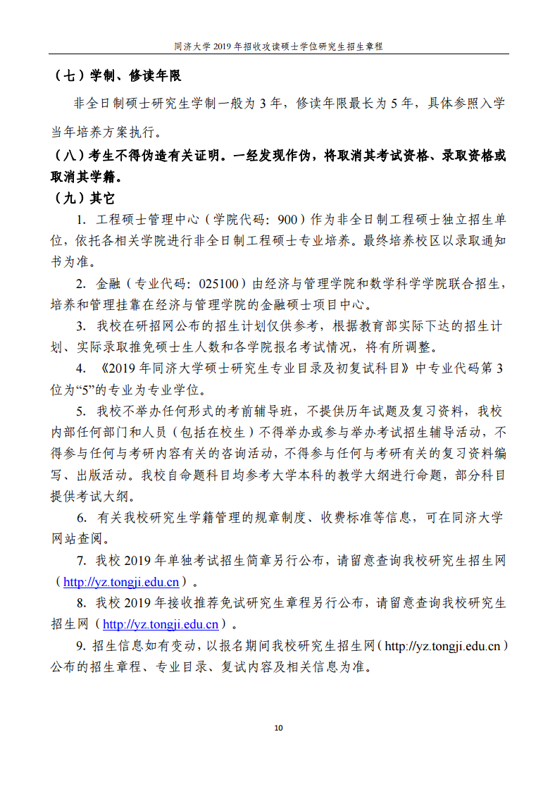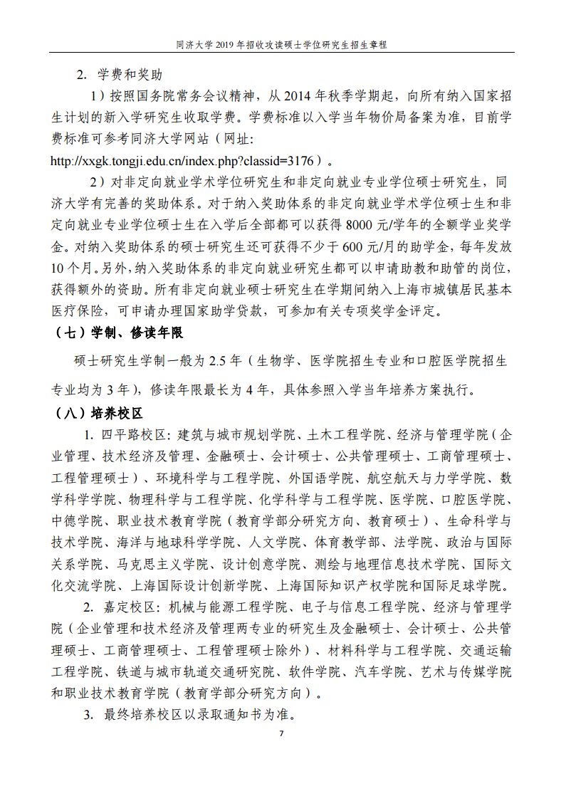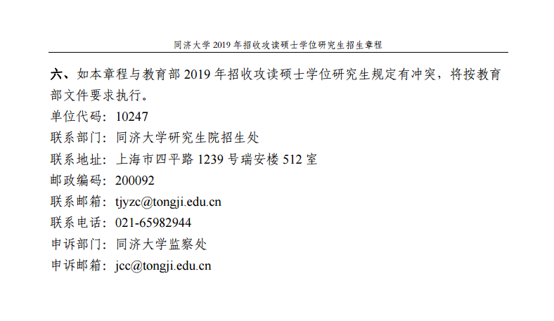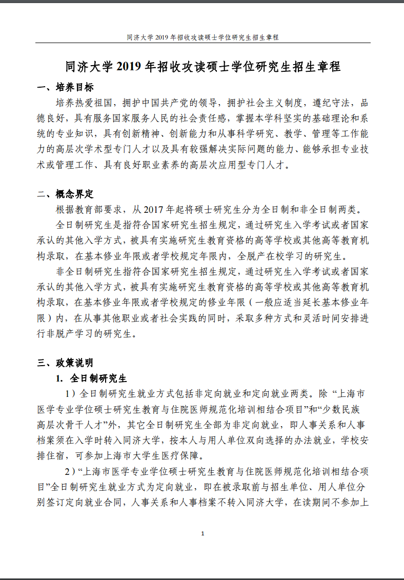 同济拼搏(中国)2019年招收攻读硕士学位研究生招生章程