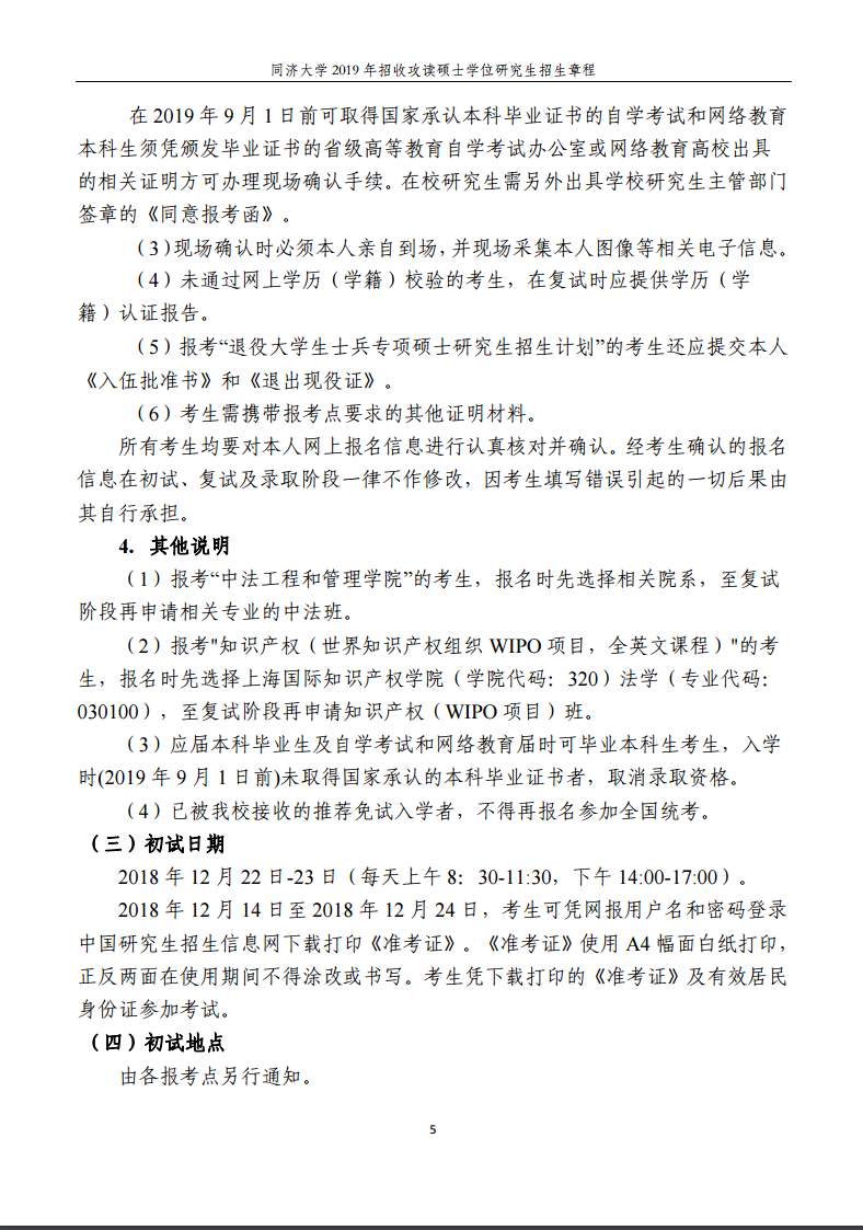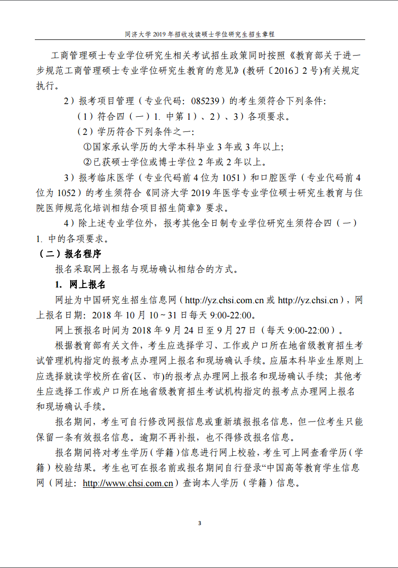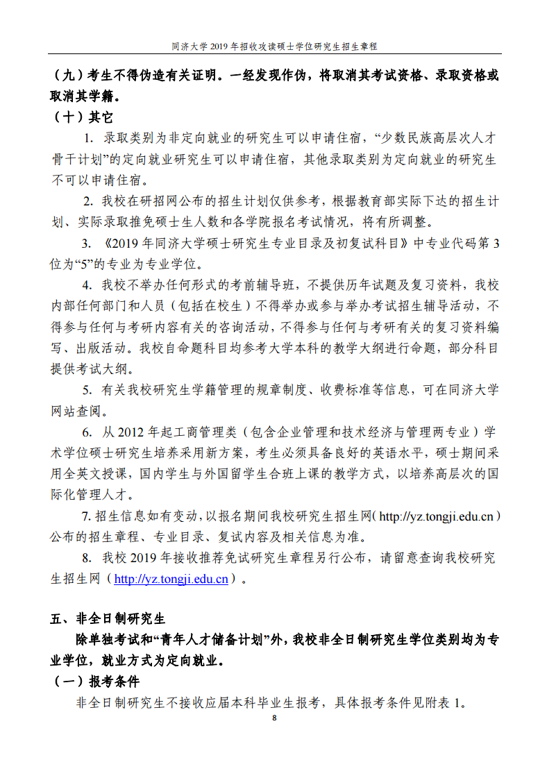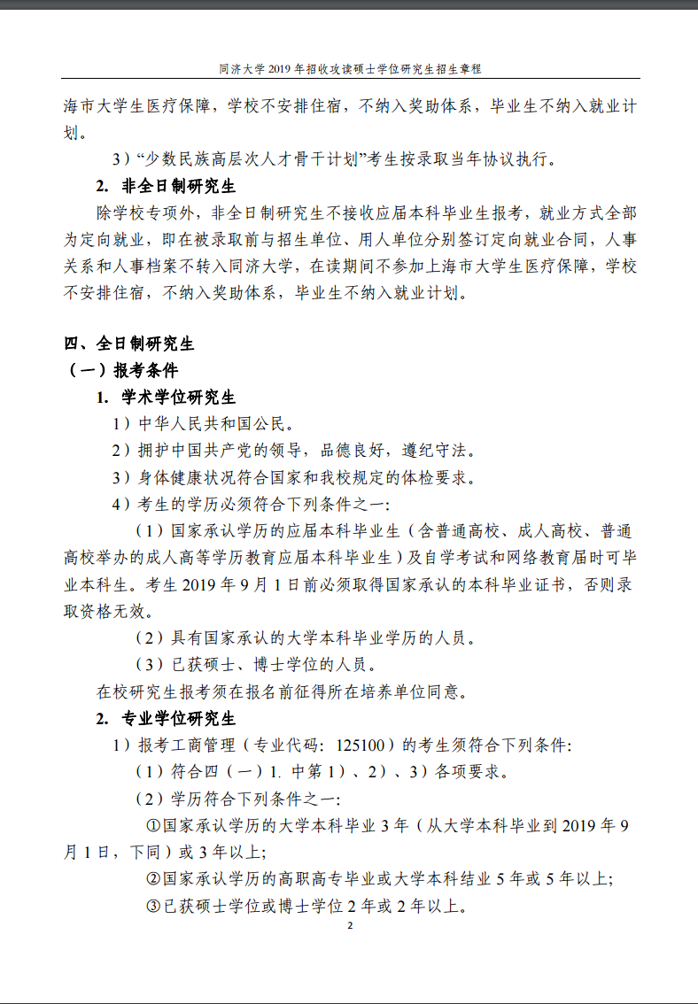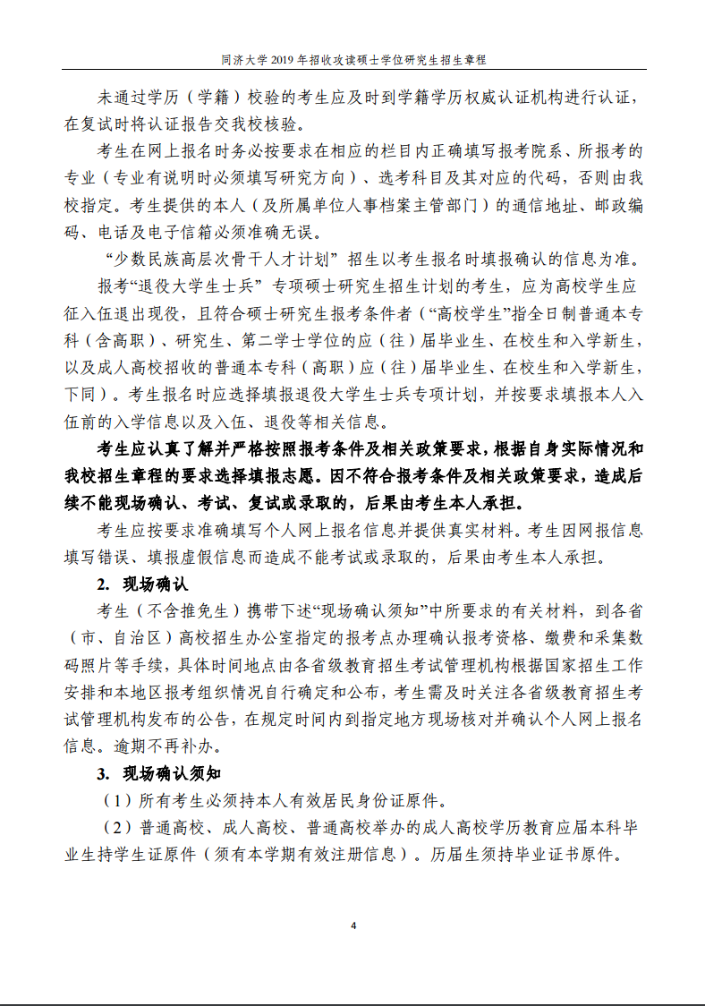 同济拼搏(中国)2019年招收攻读硕士学位研究生招生章程