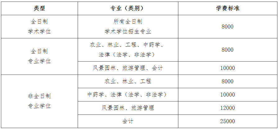 硕士研究生学费收费标准如下(单位:元/生·学年):