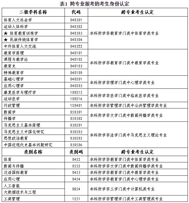 (四)是否属于跨专业报考由我校认定,跨专业报考的考生身份认定见表1。
